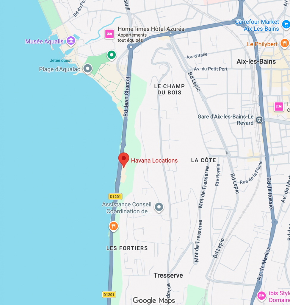 En venant de LYON : A43 – sortie n°14 Chambéry, puis N201 direction Aix-les-Bains.