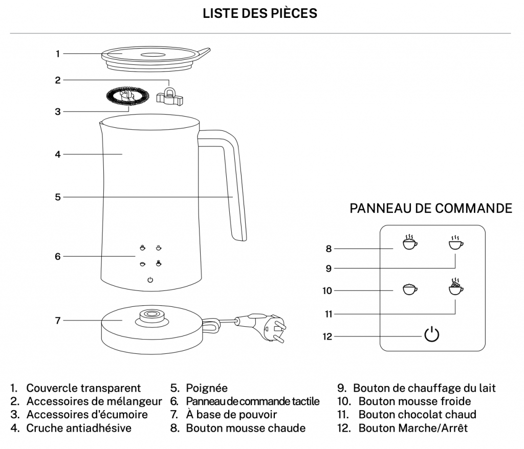 1- Remplissez avec votre liquide ( lait vache, végétal, amande…) juste le bon niveau entre MIN et MAX